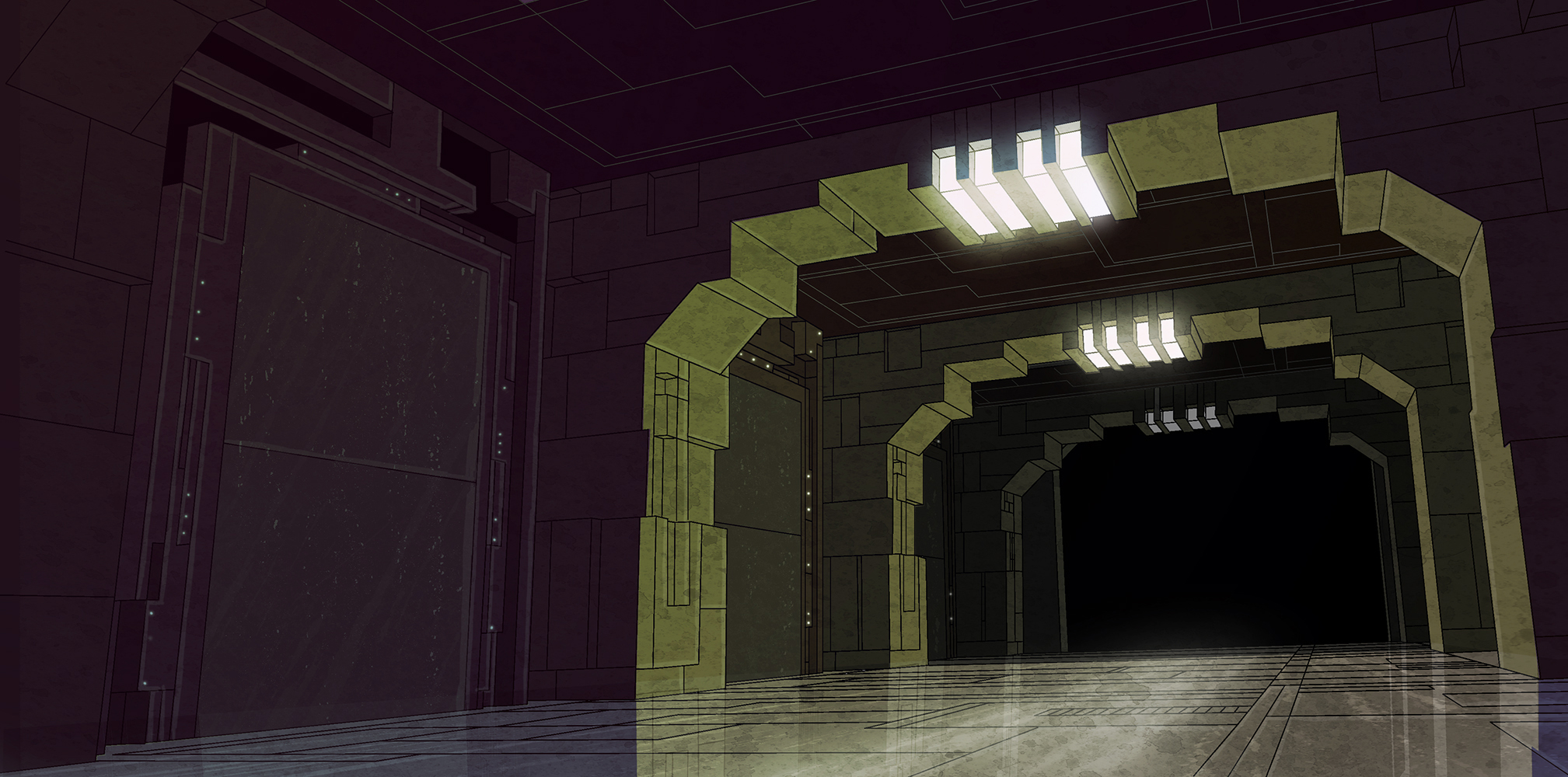 I’m huge fan of Genndy Tartakovsky’s Symbionic Titan, particularly of its backgrounds by designer Joseph Holt, so that series is one of the majors influences of how I plan to render this series’ backgrounds. The background above is the interior of a defenseless, dying starship.