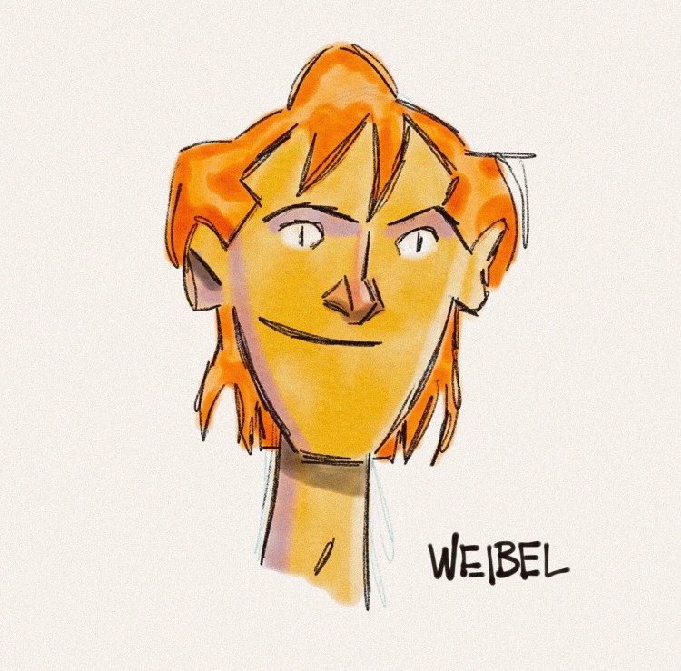Played with two design elements I don’t usually incorporate in my characters lately: Decided to try out the solid color “red stuffy nose” design element I see a lot in character design these days, and opted to give him a long Samurai Jack style jawline.